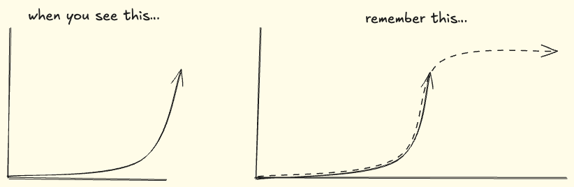 I once saw a meme (I looked for it for hours but couldn't find it) that had a little speech bubble at the end of the graph that said something along the lines of "I know what is normal. The future is predictable from the present." The intent of the meme is obviously to mock that mindset. You are stuck on a technological rocket ship pointed directly up! Such is the nature of exponentials. All shall quake before the great and terrible exponential.